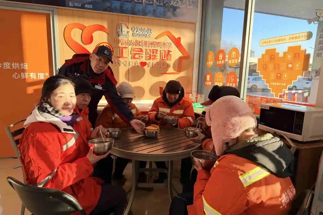 腊八当天,尧都公司依托爱心驿站开展“腊八送暖粥 情系奔波人”主题活动,为过往司机、环卫工人等户外劳动者送上精心熬制的腊八粥,在寒冬中传递温暖与关怀。在加油现场,他们为前来加油、歇脚的环卫工人、货运司机及其他旅客递上一碗碗热气腾腾的腊八粥,并亲切叮嘱大家注意防寒保暖与出行安全。